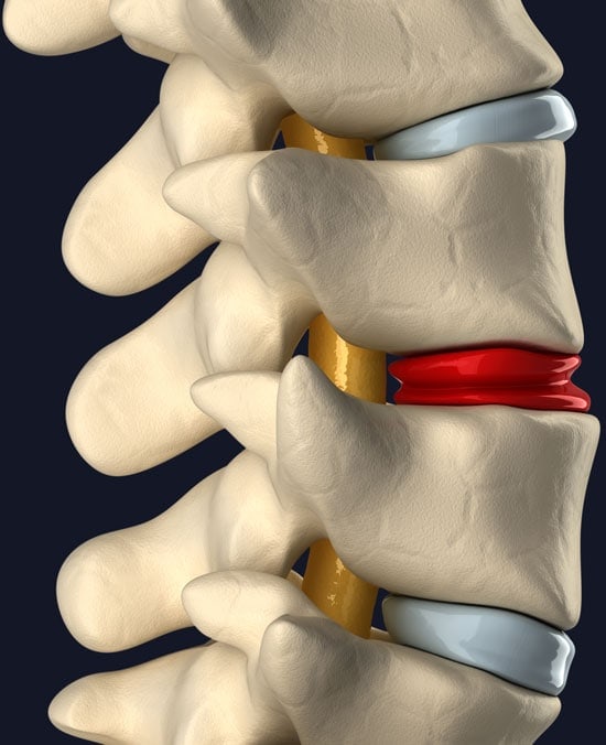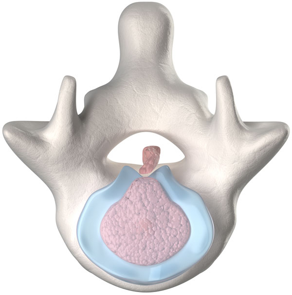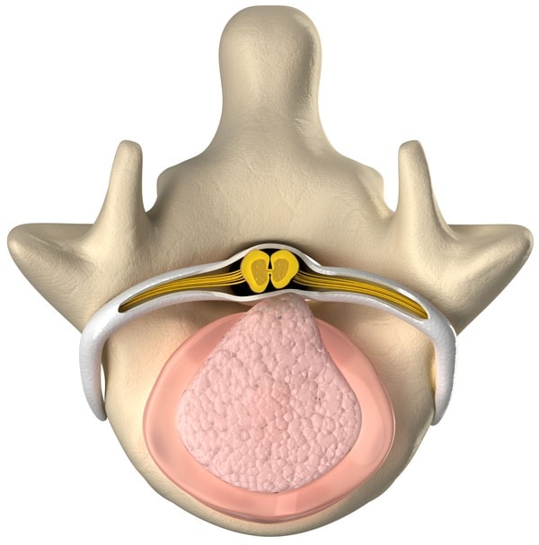 A herniated disc is also called a disc extrusion, slipped disc, sequestration, or “HNP” (Herniated Nucleus Pulposis). This means that the outer covering of the disc (annulus) is completely torn or damaged and the inner gel squirts out. This can put pressure on a spinal nerve or cause severe swelling and lead to numbness and tingling (sciatica).